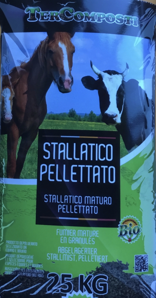 Stallatico pellettato é da preferirai nei casi in cui si desidera una più lenta cessione nel terreno. Prodotto dalla miscelazione di letame avicolo,bovino ed equino