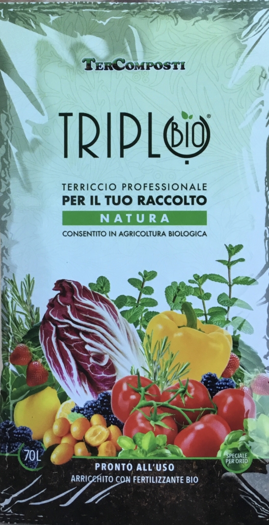 Triplo natura é un terriccio professionale consentito in agricoltura biologica. Ideale per la coltivazione di ortaggi,frutta ed erbe aromatiche.La sua composizione,completamente naturale ed equilibrata,realizzata con matricivegetali e bio fibre,arricchita di sostanza proteica,assicura il giusto apporto nutritivo per uno sviluppo sano e rigoglioso. Il giusto insieme di torbe soffici,porose drenanti,per permettere alle radici di crescere rapidamente in modo sano. La concimazione biologica garantisce la crescita di frutta e verdura sana e saporita. È perfetto anche per la coltivazione in vaso o vaschette.